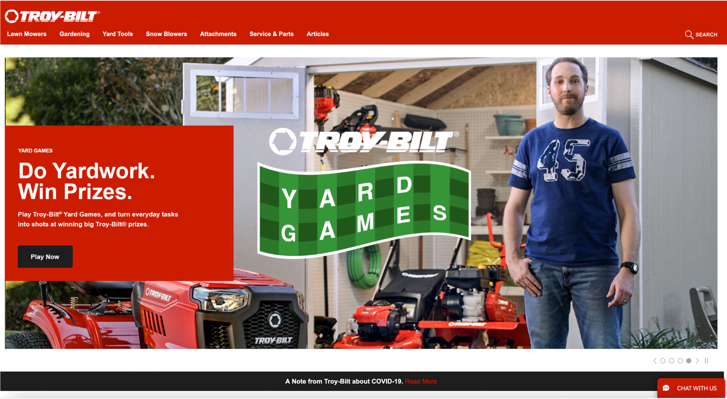 Troy-Bilt helps make yard work more enjoyable. And what’s more enjoyable than winning? We know that Troy-Bilt customers take pride in their yards, so we created a campaign that turned yard work into a game you can win. Because who doesn’t like to feel like a champion? The extensions included a mobile-first gamification called Yard Games, where players could score huge Troy-Bilt prizes just for doing chores they would have done anyway.
